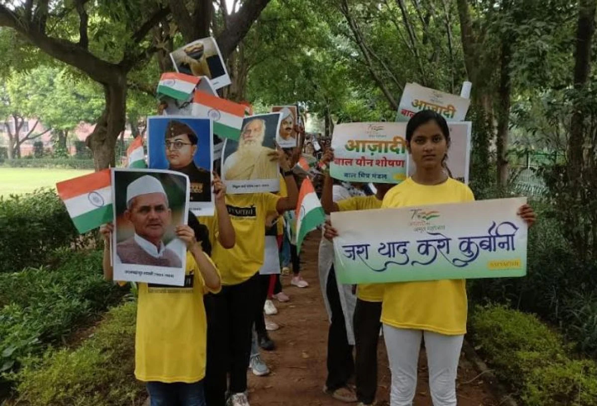 इस पूरे कार्यक्रम का आयोजन नोबेल शांति पुरस्कार से सम्मानित कैलाश सत्यार्थी द्वारा स्थापित कैलाश सत्यार्थी चिल्ड्रेन्स फाउंडेशन के बाल मित्र मंडल (बीएमएम, संजय कैंप) ने किया था। इस मौके पर इन 75 बच्चों ने न केवल उन शहीद स्वतंत्रता सेनानियों की वेशभूषा धारण की, बल्कि उनके नारों को भी एक बार फिर आसमान में गुंजायमान कर दिया। साथ ही बच्चों ने उनके योगदान की कहानी को भी एक बार फिर हिंदुस्तान की आबोहवा में बिखेर दिया। इनमें कुछ बच्चे जवाहर लाल नेहरू, महात्मा गांधी, नेताजी सुभाषचंद्र बोस, लाला लाजपत राय और केशव बलिराम हेडगेवार की वेशभूषा में थे।
