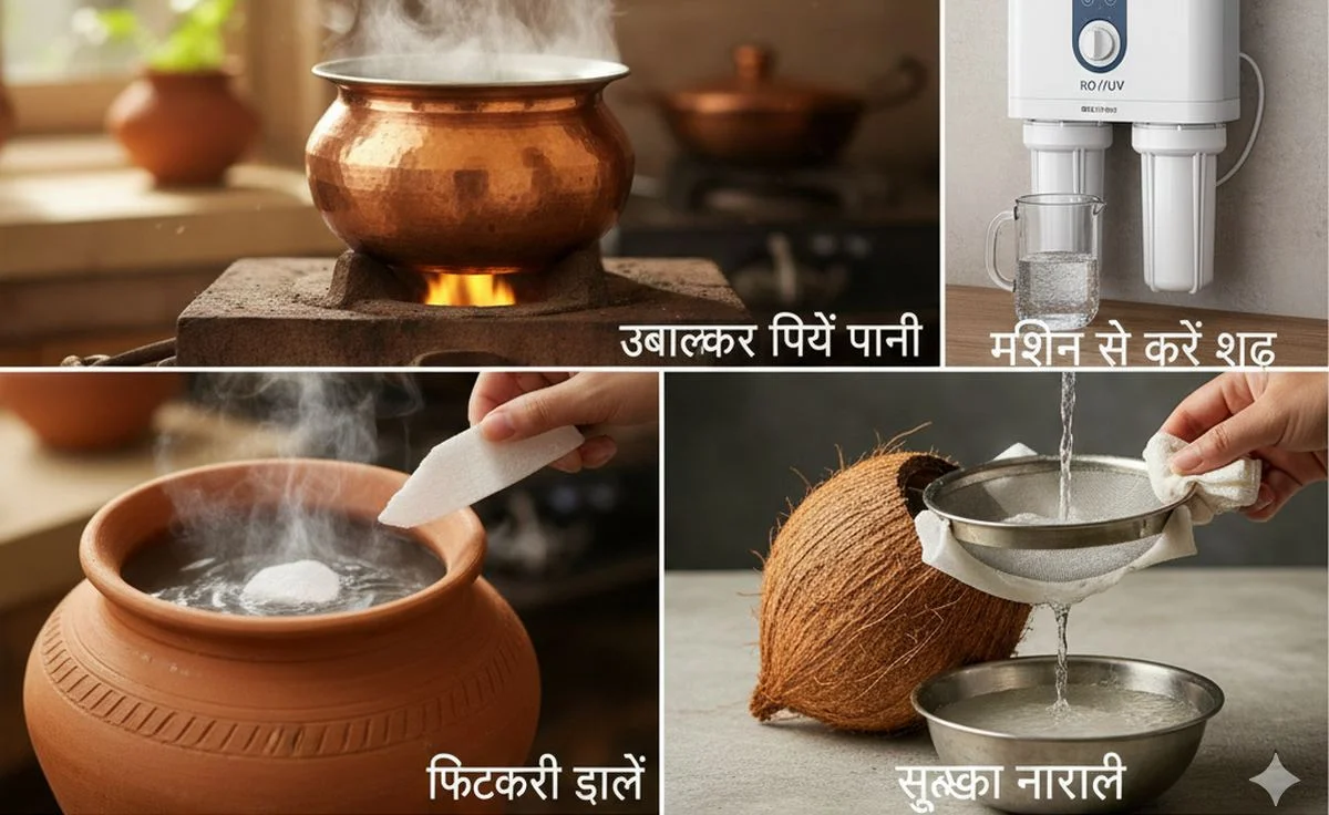 2. मशिन से करें शुद्ध: RO या UV फिल्टर मशिन से फ़िल्टर किया हुआ पानी पिएं। लेकिन इसे पानी का स्वाद बदल जाता है और इसके साइड इफेक्ट भी हैं। RO पानी से ज़रूरी मिनरल्स निकल जाते हैं, इसलिए प्राकृतिक तरीके बेहतर माने जाते हैं।