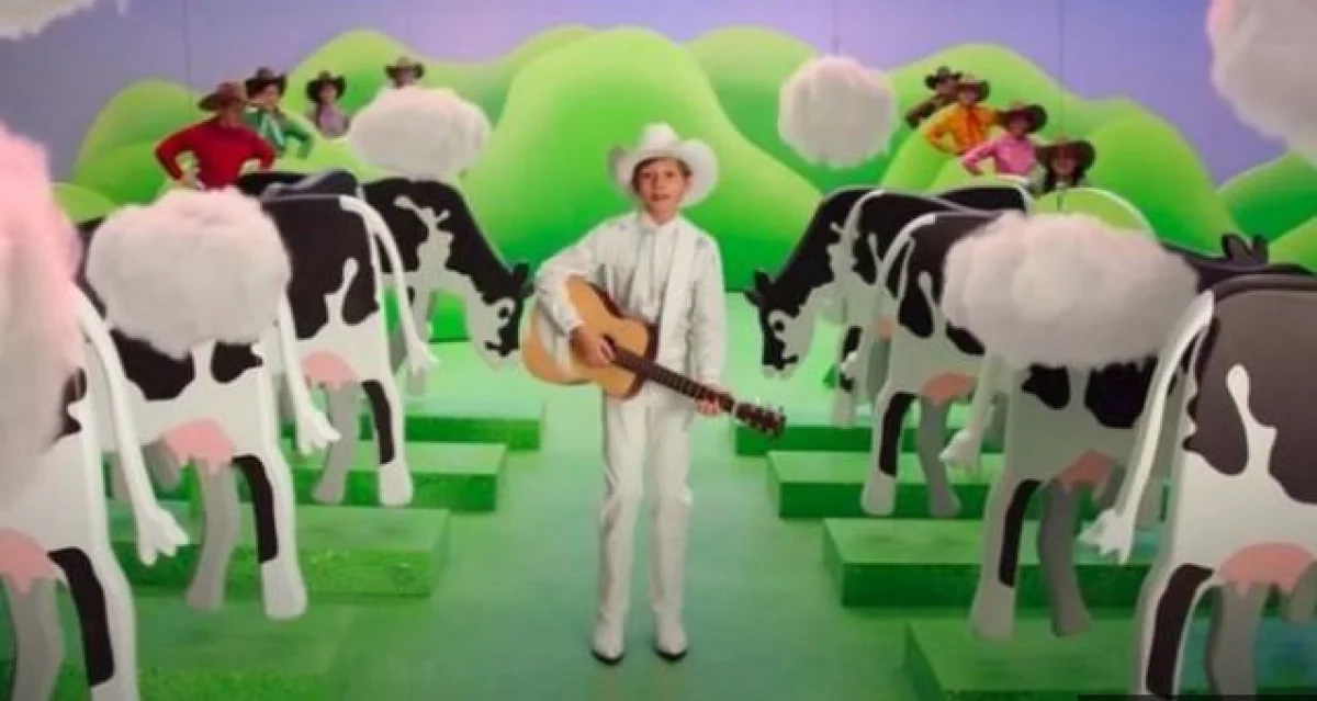 विज्ञापन में कॉउबॉय हैट में बच्चों को दिखाया गया है, यह बच्चे दिखा रहे हैं कि गाय ग्लोबल वॉर्मिग पर असर और कैसे वह मीथेन गैस के उत्सर्जन पर असर डालती हैं।