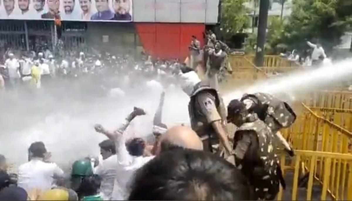 प्रदेश कांग्रेस दफ्तर से युवा कांग्रेस के राष्ट्रीय अध्यक्ष श्रीनिवास और प्रदेश अध्यक्ष विक्रांत भूरिया के नेतृत्व में युवा कांग्रेस के कार्यकर्ता जैसे से ही सीएम हाउस के घेराव के लिए आगे बढ़े पुलिस ने रेडक्रॉस अस्पताल के बाहर ही बैरिक्रेड्स लगाकर पहले उनको रोका। इसके बाद जब युवा कांग्रेस कार्यकर्ता बेरिकेड्स पर चढ़ने की कोशिश तो पुलिस ने वॉटर कैनन का प्रयोग करने के साथ हल्का बल भी प्रयोग किया। इसके बाद पुलिस ने कांग्रेस नेताओं को हिरासत में ले लिया।
