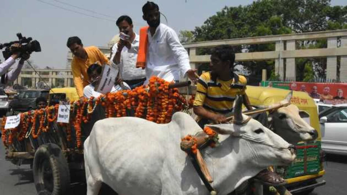 सोमवार को विधान भवन प्रांगण में भाजपा के विधायक बैलगाड़ी से पहुंचे तो विधानसभा में चर्चा का विषय बने रहे। बताते चलें कि उत्तरप्रदेश के झांसी के गरौठा से भाजपा विधायक अनूठे अंदाज में सदन में पहुंचे। विधायक जवाहर लाल राजपूत विधान भवन प्रांगण में बैलगाड़ी लेकर पहुंचे।