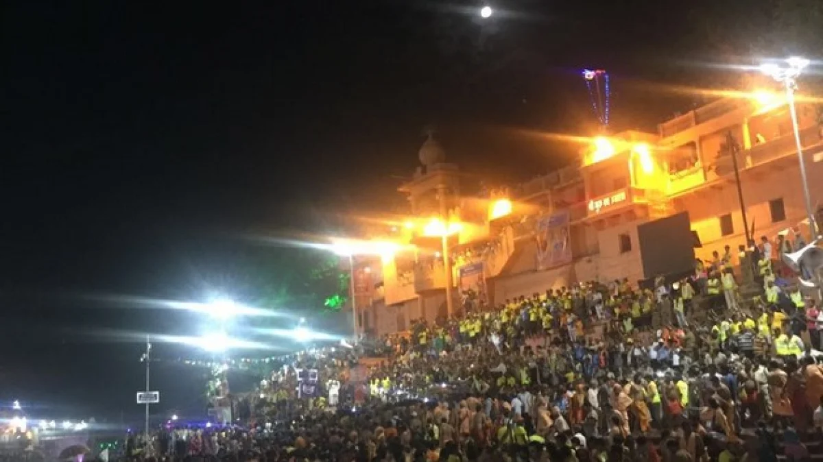 पूर्णिमा के अवसर पर चांद भी इस तरह चमक बिखेर रहा था मानो वह भी संतों को स्नान करते देख उनपर अपना आशीर्वाद बरसा रहा हो और रामघाट पर आस्था की डुबकी लगाकर ही लौटेगा।