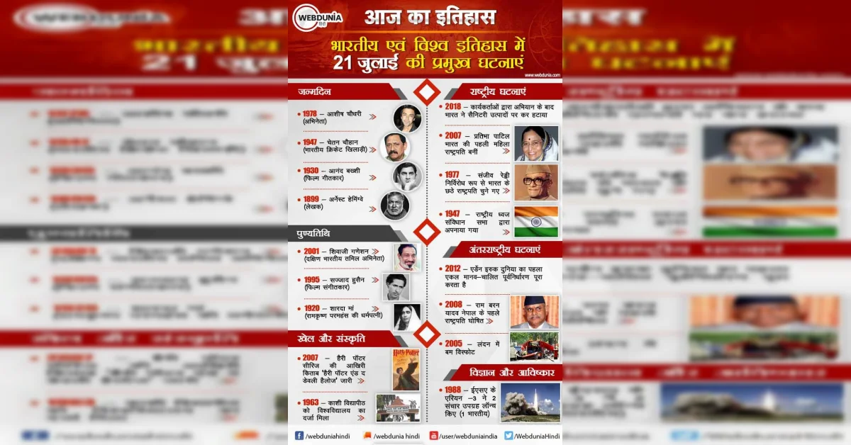 आज का इतिहास : भारतीय एवं विश्व इतिहास में 21 जुलाई की प्रमुख घटनाएं