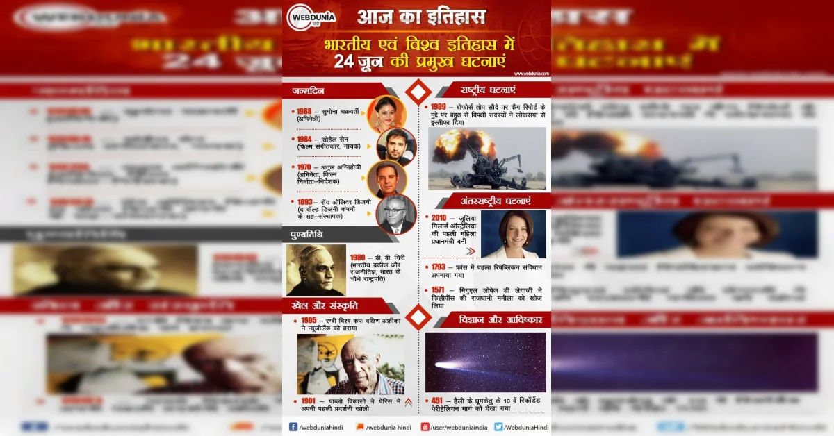 आज का इतिहास : भारतीय एवं विश्व इतिहास में 24 जून की प्रमुख घटनाएं