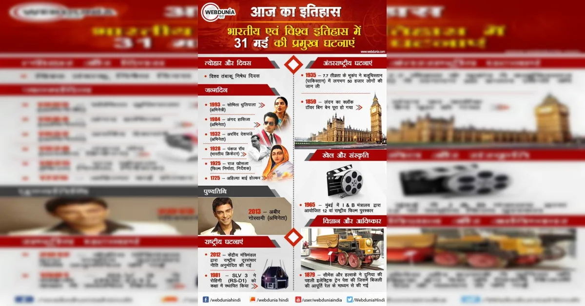 आज का इतिहास : भारतीय एवं विश्व इतिहास में 31 मई की प्रमुख घटनाएं